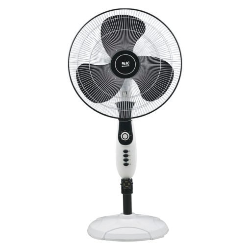 This White Black fan is available in an 18″ size and includes essential components such as the motor, blades, guard, pipe, and floor base for easy setup. Designed to deliver reliable airflow, it suits various indoor spaces with a sleek and functional design.